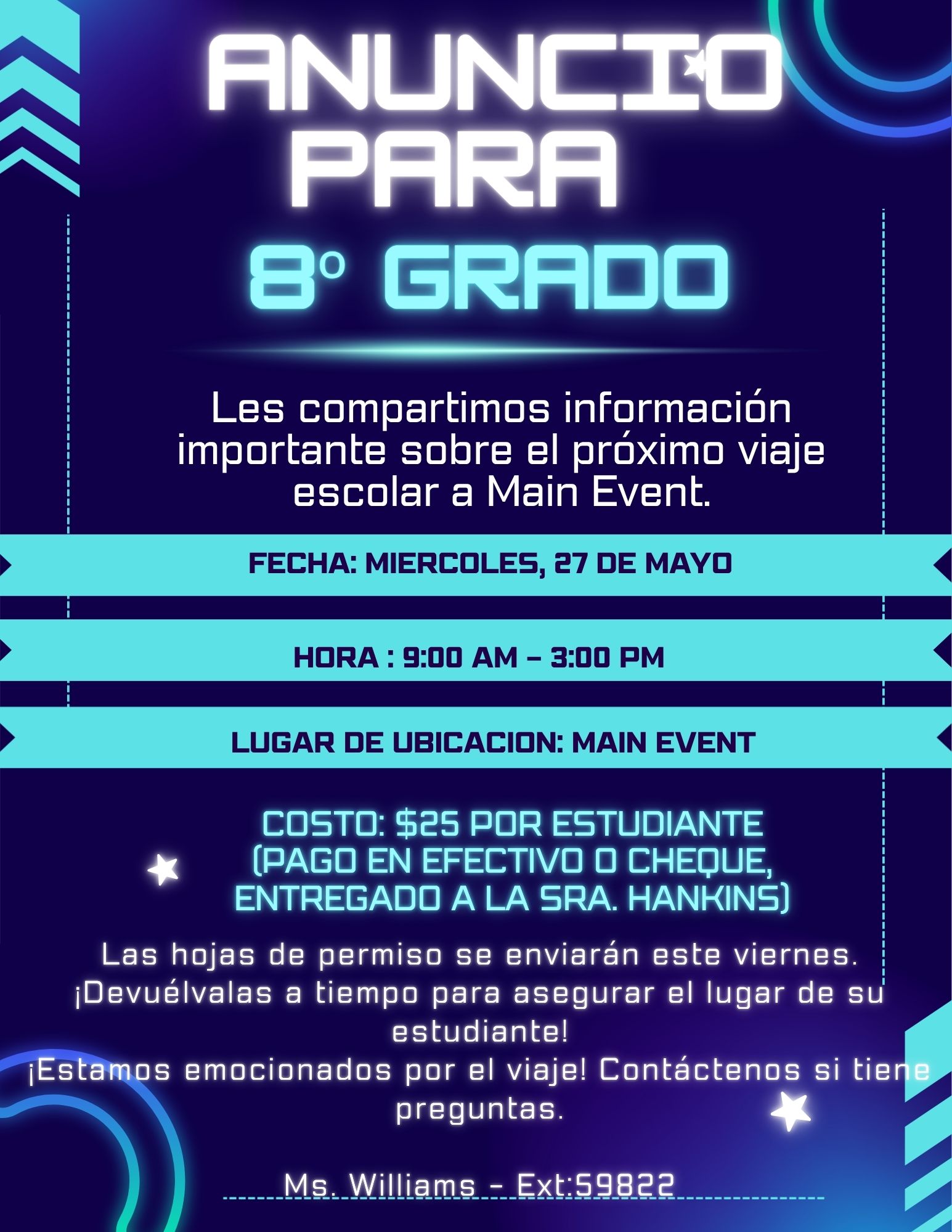 Si tiene alguna pregunta sobre el programa FORWARD, no dude en comunicarse con Sra. Amber Watts: