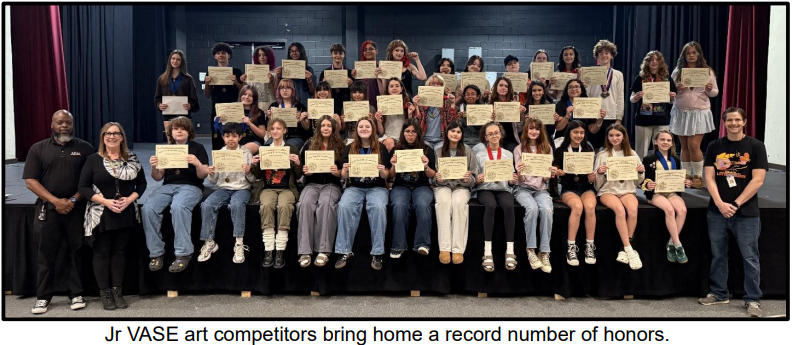 year’s UIL Jr VASE Competition. We are very proud to announce that students earned 47 medals, 14 students earned perfect scores from their judges, and 4 students earned Platinum Medals – the highest honor awarded. Special congratulations to Kylie K, Gaia E, Linden R, and Kevin K. Thanks to all our wonderful artists for representing Covington so well.