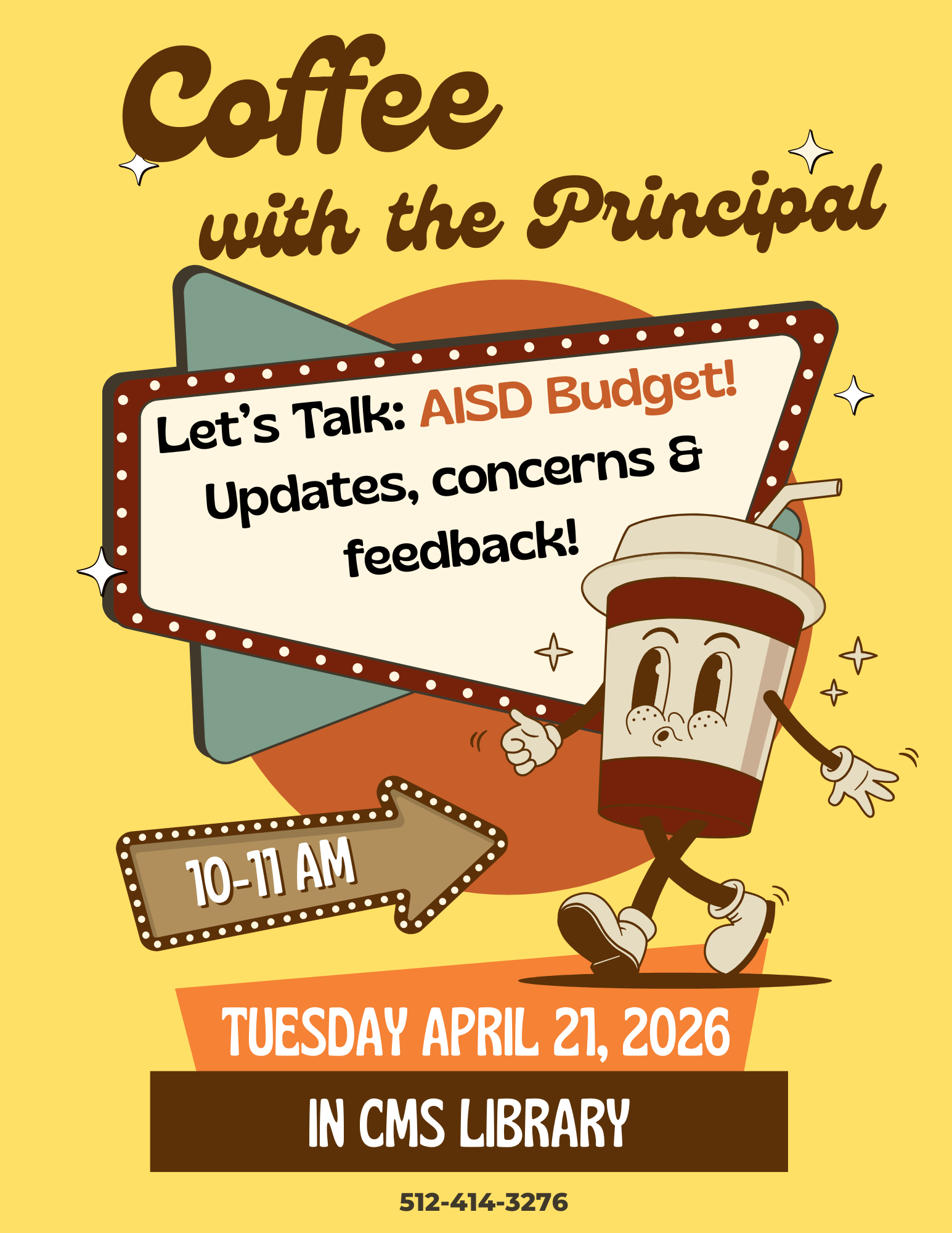 Additionally, many of you are aware of the ongoing conversations regarding the AISD budget deficit. To continue open communication, we will host an additional Coffee with the Principal on Tuesday to discuss this topic. This will be an opportunity to share updates, gather feedback, and hear your thoughts. We value your voice and will be sure to share your input with the district. We encourage all families to attend and be a part of the conversation.