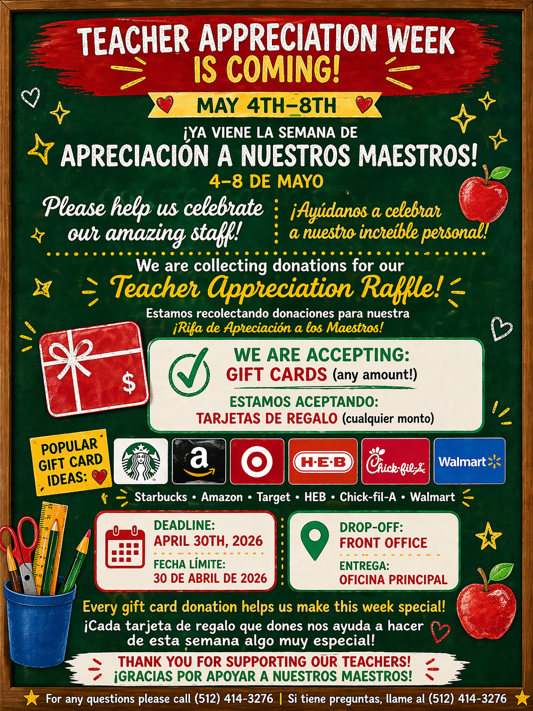 Teacher Appreciation week is May 4th - 8th |
