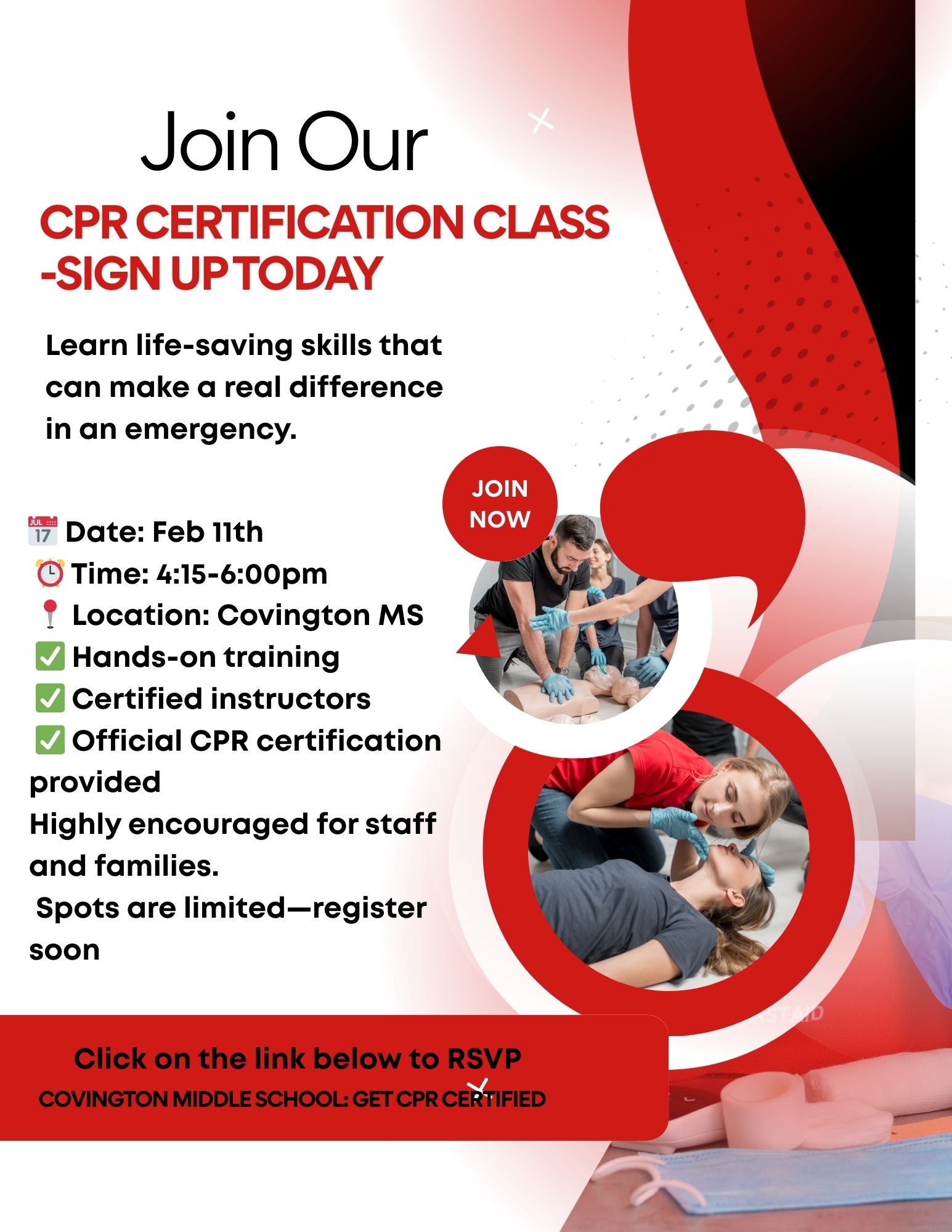 Friday, Feb 5th: Band Night Frenzy @ 4pm Location: Covington Theater Saturday, Feb 7th: Girls Soccer vs Burnet @ 9am Location: Covington MS TESTING DATES: Tuesday, Feb 3rd: STARR Interim- ELAR