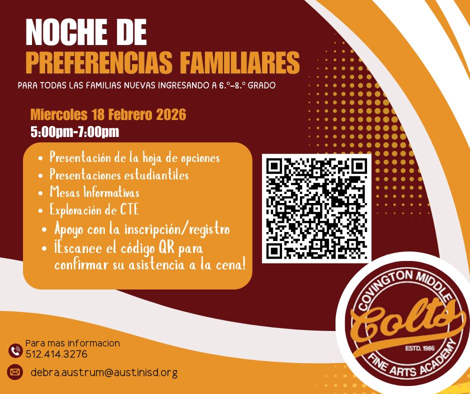 Additionally, if you own a small business, have family or friends who own a small business, or know an interested party who may want to be a vendor at ColtsFest, please email our Parent Support Specialist, Alejandra Castillo, at alejandra.b.castillo@austinisd.org. Thank you for your continued partnership and support. We are excited for a strong week ahead at Covington! |