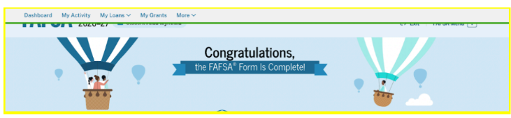 awards here: Class of 2026 Scholarship Awards Below is an example of what the screenshot of a completed FAFSA looks like and this is what Dr. D needs as proof. Your name and the completion date need to appear below the hot air balloons. |