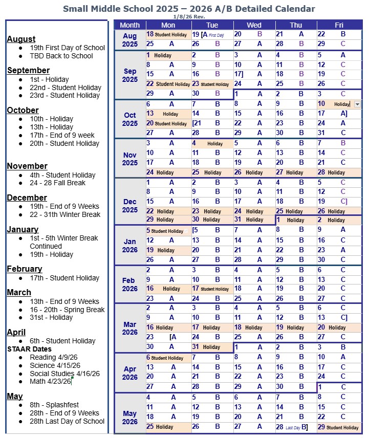 We have updated our A/B Calendar for the second semester. Please print this one and put it on your fridge as there have been some changes in March and we added the Staar Dates. |