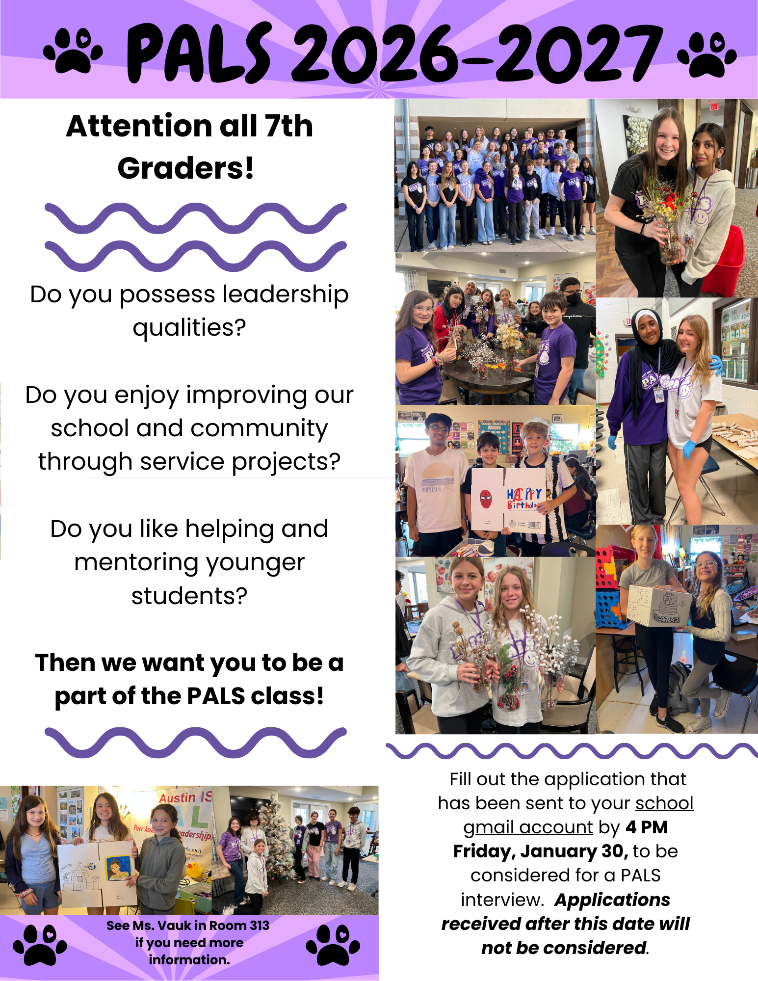 We are looking for students who exemplify what being a Small Cougar is all about! Help make Small a better place to learn as a member of NJHS. Applications for Clint Small Middle School’s National Junior Honor Society are open through February 24, 2026. Students must access the link through an AISD account. The link can be found on the school website. The application is editable, so it does not need to be completed at a single time. The committee will make determinations by spring break. Please direct any questions to shelby.ottleybujan@austinisd.org