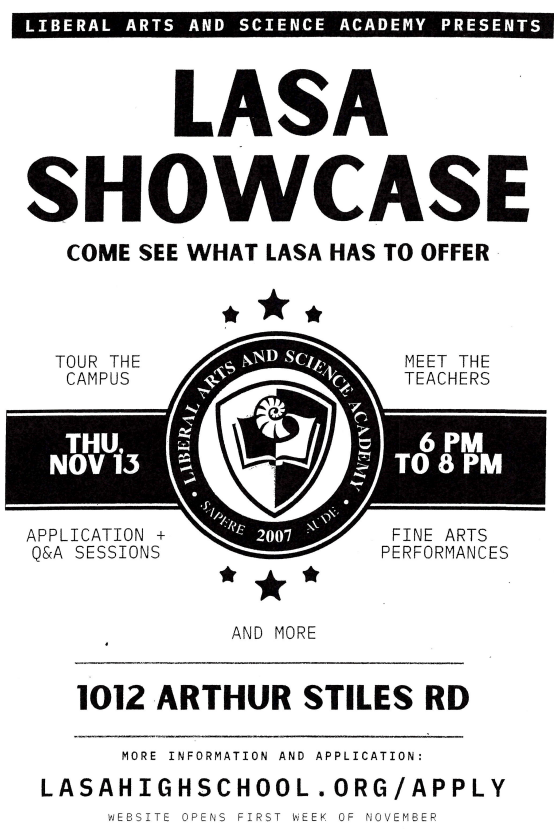 We wanted to share some important dates with you! Representatives from Austin High, LASA, and McCallum will be visiting Small to present information about their high schools. Please mark your calendars so students don’t miss the opportunity to learn more about these schools.