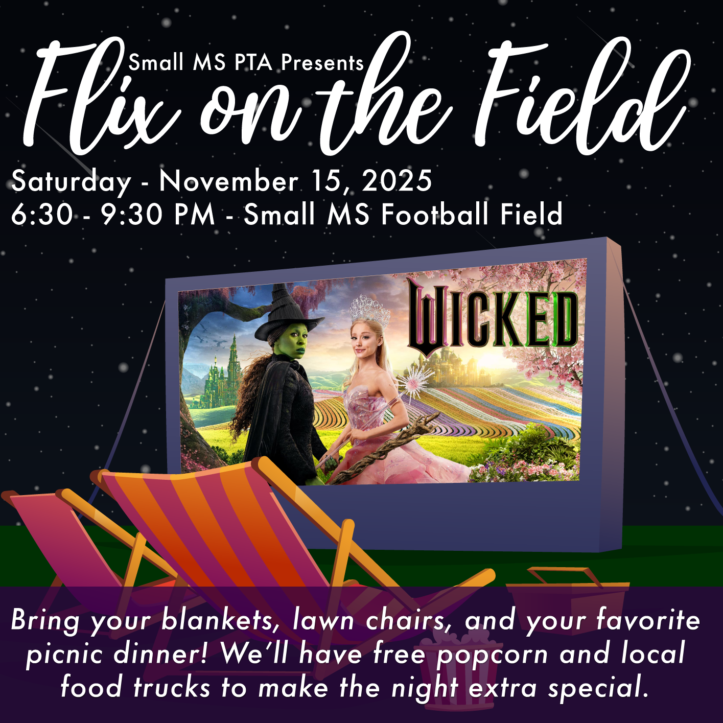 It’s time for Flix on the Field! Join the Small Middle School PTA for a magical movie night under the stars as we show Wicked!