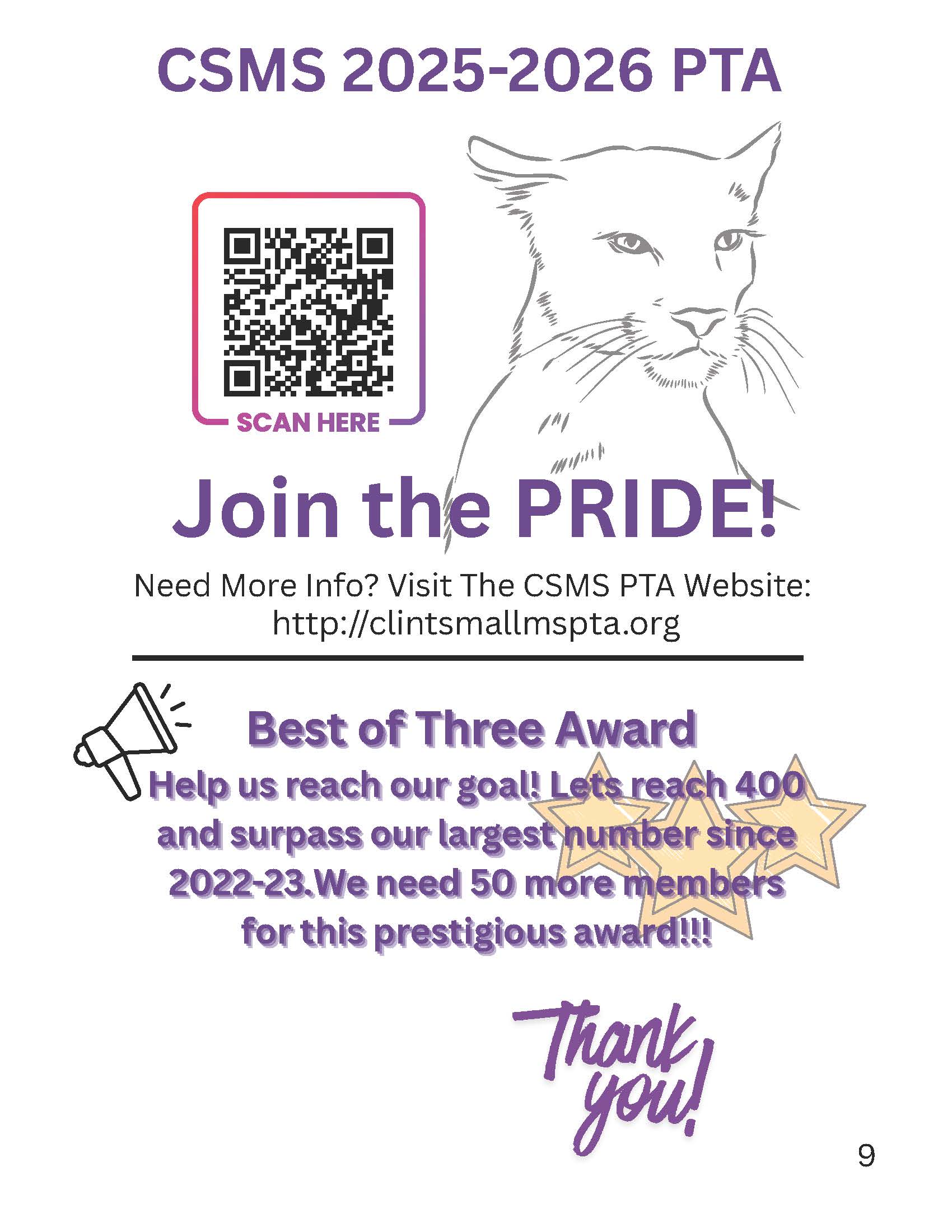 It's not too late to join the PTA and help us reach our goal of 400 members. Click HERE to join today!