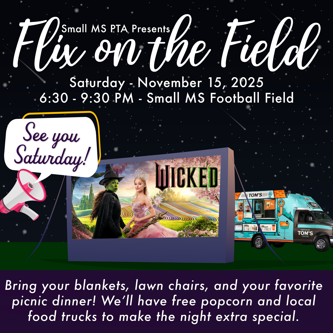 It’s time for Flix on the Field! Join the Small Middle School PTA for a magical movie night under the stars as we show Wicked!