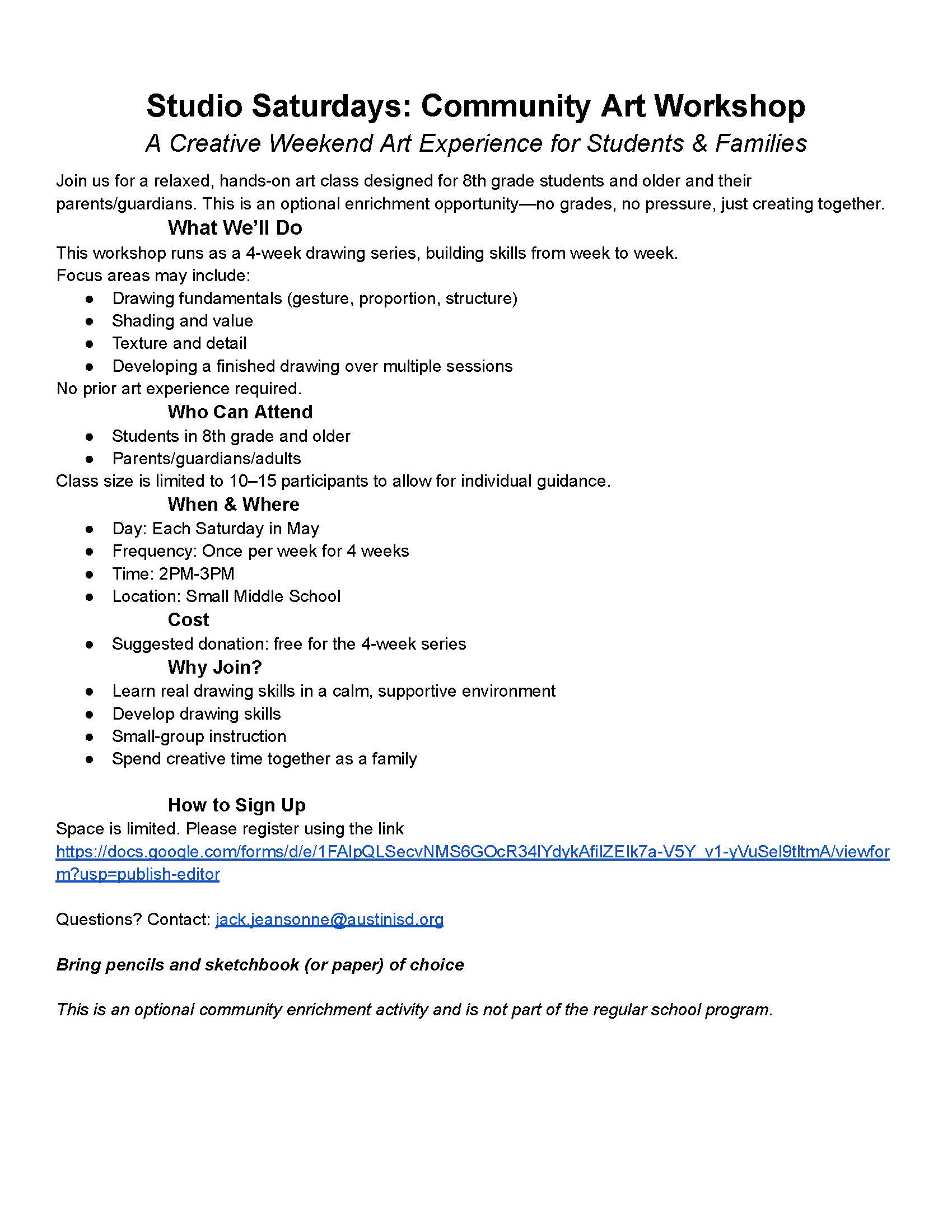 If you have any questions please email Mr. Gonzalez at Richard.gonzalez@austinisd.org