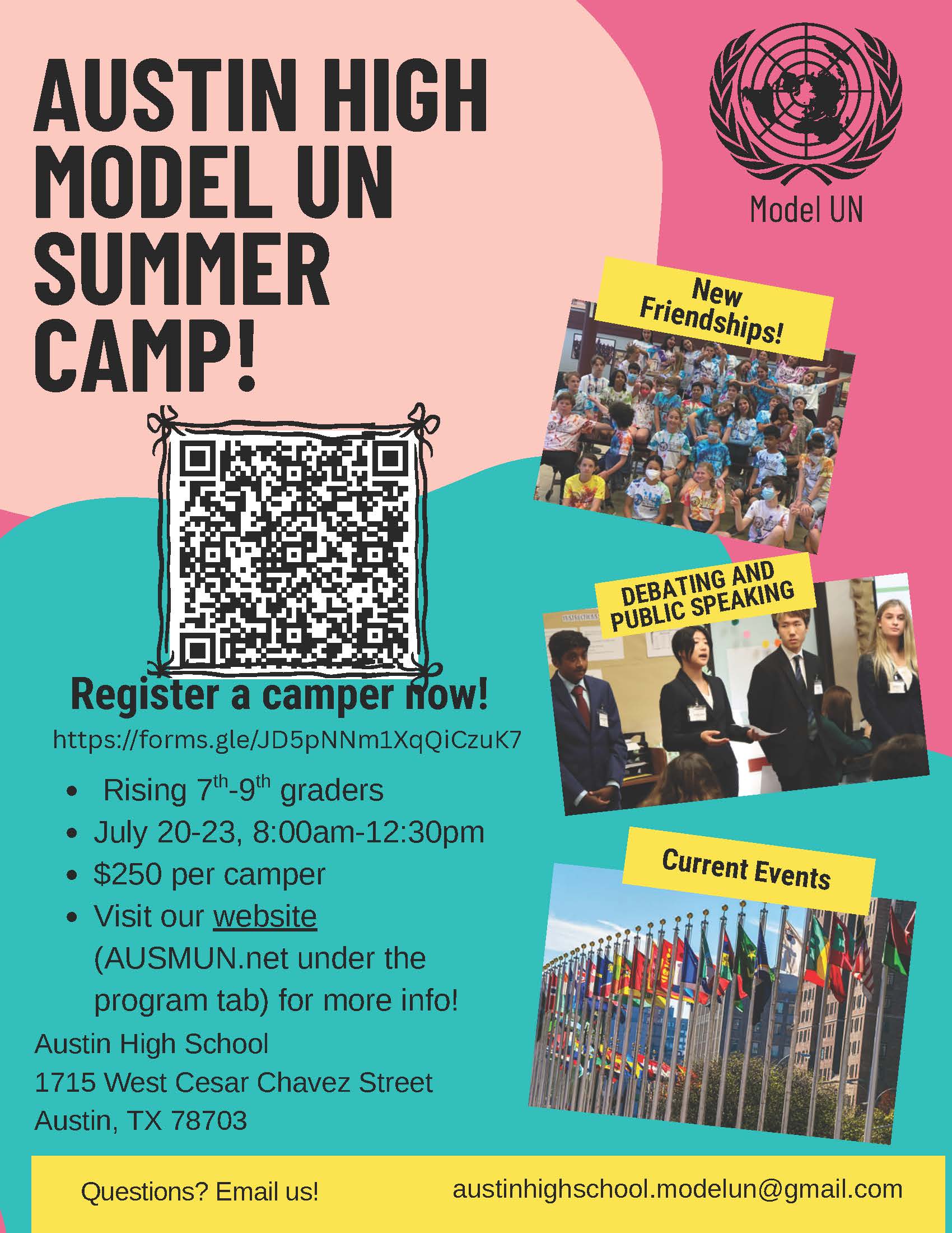 Austin High School’s Model United Nations team is excited to host our annual MiddleMUN Conference for middle school students across the Austin area.